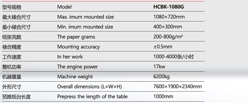HCBK-1080G型高精度全自动卡纸裱合机,面纸和底纸采用PLC控制的飞达输送机,使输纸过程平稳准确。底纸上胶部根据不同纸张的要求,在不停机状态下来调整胶水涂布量,提高工作效率。底纸和面纸同时通过侧拉规定位进入复合辊裱合,初压合后再经过多次液压压合辊输出,成品进入收纸机。