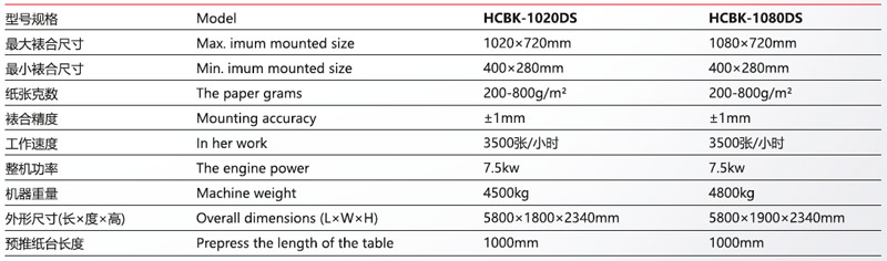 HCBK-1020/1080DS自动单工位+收纸卡纸裱合机,底纸采用PLC控制的飞达输送机,使输纸过程平稳准确,底纸上胶部根据不同纸张的要求,在不停机状态下来调整胶水涂布量,提高工作效率。底纸通过侧拉规定位进入复合辊裱合,初压合后再经过多次液压压合辊输出,成品进入收纸机。